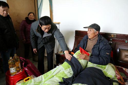 随后,季金祥一行逐一走访了周勇军、许波兰、刘邦泽、沈达4户困难家庭和老党员,并赠送了困难家庭慰问金和米、油等过节物资。在困难老党员沈达家中,季金祥亲切询问了沈达一家的近期日常生活和他的身体情况,当得知沈达配偶智障、本人身体一直不好、近期又因骨折卧床在家、仅靠儿子一人打零工维持全家生活时,他叮嘱沈腰村一定要给予沈达家庭更多的关心,帮助他早日恢复健康,使这个困难家庭早日走出困境。“很感谢市总工会和镇村的领导们来看我,也多亏了党和政府一直以来对我们一家的关心和照顾!”卧病在床的沈达激动地说。