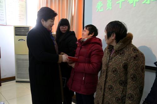 在生建村社区,葛玉琴代表市总工会捐赠了3万元共建资助金;给工业园区春节留守职工赠送电影票,为他们献上文化大餐,感谢他们的默默付出;向长期结对帮扶的8名困难职工家庭送上慰问金以及大米、棉被等物资。生建村社区党总支书记张建鑫汇报了社区一年来的工作情况和共建工作开展情况,对市总工会多年来的资助表示了感谢。钟秀街道办事处主任张文锦对市总工会多年来对生建村社区在文明共建、困难共帮、资源共享、发展共谋方面给予的鼎力帮助表示了感谢。