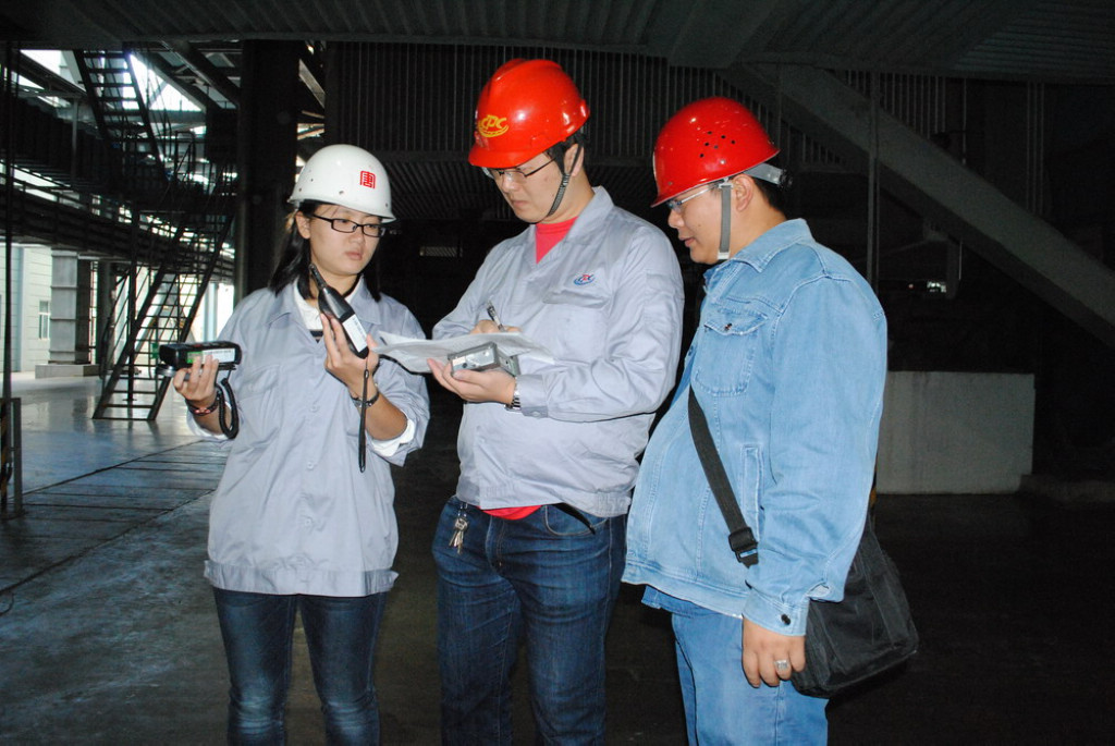 检测人员在生产现场测量