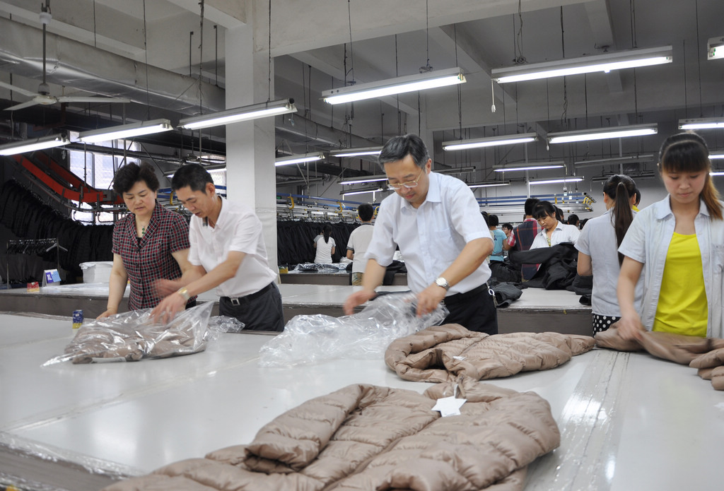 当前,省总工会正在深入开展党的群众路线教育实践活动,马主席此行来到三友集团,带头“下基层、接地气”,真正地从基层一线了解企业的生产经营状况、基层工会工作和职工的思想动态、工作环境,通过最直接的方式联系职工、贴近职工、体验劳动。座谈会后,马主席一行走进生产一线,首先亲切看望了集团“特殊车间”的老员工。接着来到整烫车间,与职工们进行了亲切交谈并加入到职工们的生产队伍,与职工一起劳动,帮助车间穿吊牌、套袋子、装箱。在进行短暂“培训”后,马主席和潘部长很快就成为了“熟练工”,他们在努力完成“本职工作”的同时,还不忘与职工们“比比高下”,大家干得热火朝天。他们的加入,极大地鼓舞了职工们的士气,也在车间形成了一派和谐热闹的生产场景。