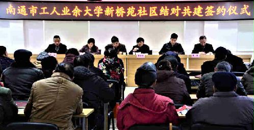 新桥苑社区党委现有党员200多人,是崇川区先进基层党组织。双方结对后,市工人业余大学将利用培训教育资源,组织党员走进社区开展志愿服务活动,同时对社区党员活动和党建活动阵地建设提供力所能及的帮助和支持;新桥苑社区党委将利用丰富的基层党建资源为市工人业余大学开展党员教育活动和教学培训活动提供实践场所和支持。双方将重点实施党建领航、党建惠民、党内关爱三项工程。