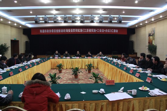 南通市政协委员视察调研海安县贯彻实施《江苏省实施〈工会法〉办法》汇报会