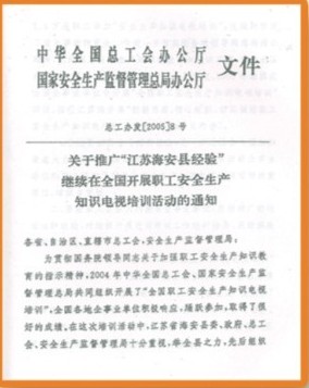 五五普法以来,全县各级工会举办了多期职工安全生产知识电视培训班,邀请了安监、卫生、气象、交巡警、供电、消防、建设等8个职能部门的负责同志进行业务辅导。在安全培训形式上,除采用固定场所培训方式,还探索和实施了流动培训的方式,将安全生产知识送到生产一线的职工手中,到时目前为止全县共计12.93万人参加了培训,其做法已形成“海安经验”,温家宝总理三次就海安安全生产电视培训作出批示,全总和安监总局联合发文推广“海安经验”。