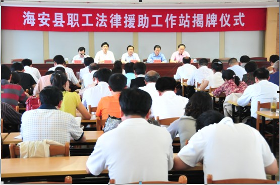 “五五”普法以来,海安县总工会充分发挥工会组织网络的作用,开展丰富多彩的职工普法活动,不断提升企业主和职工法律素质,推动企业规范化运行,发展和谐劳资关系,促进企业健康发展,维护了职工的合法权益。近年来,海安县总在创新发展的征程中不断“摘金夺银”,先后获得“全国工会系统先进集体”、“全国五一劳动奖状”、“江苏省工会工作模范县”、“江苏省文明单位”等39项省级以上荣誉称号。