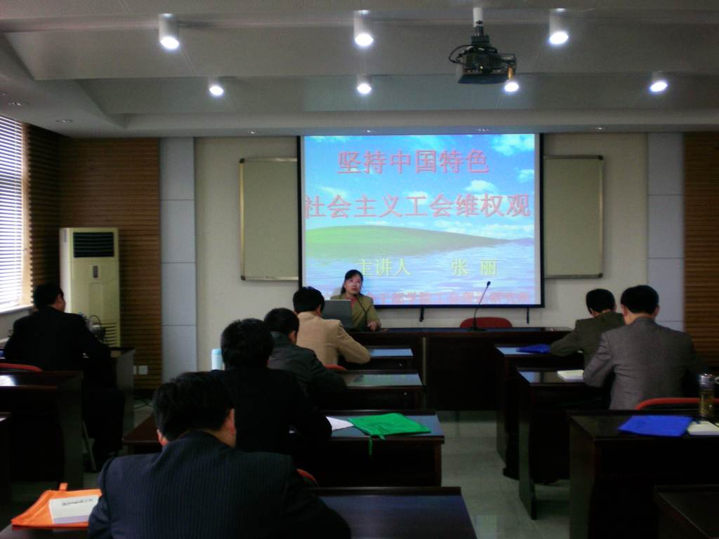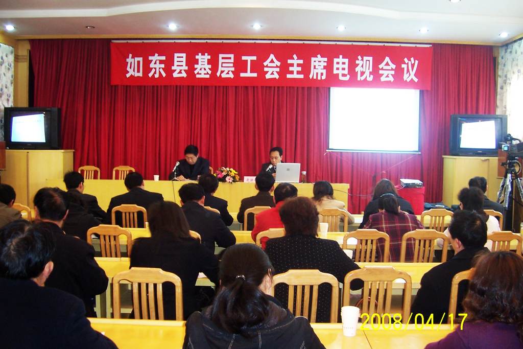 2008年县总工会通过电视电话会议形式对全县基层工会主席进行工会业务及法律法规培训。图主会场场景。
