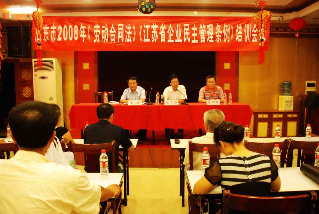 在《劳动合同法》实施后,为了扩大普法的覆盖面,启东市总工会充分发挥工会工作的优势,借助基层工会的力量,积极动员基层工会,开展各种形式的培训,乡镇、企业工会积极行动起来,全市12个乡镇、3个工业园区以及300多家规模企业面向企业工会干部、职工组织了培训,培训人次达15万人次。