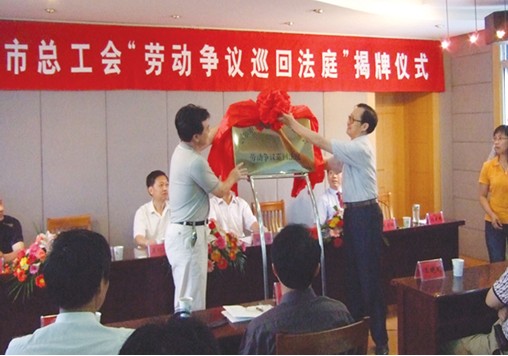 市人民法院驻市总工会劳动争议巡回法庭于2008年8月在市总工会举行揭牌仪式。