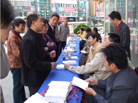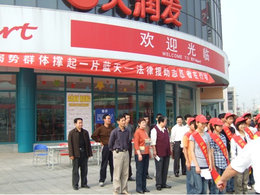 2007年5月,来自市司法局、市总工会的50个法律援助工作站的机关干部、法律服务工作者、学生、离退休老干部等200多名法律援助志愿者集聚到市大润发广场进行集体宣誓。