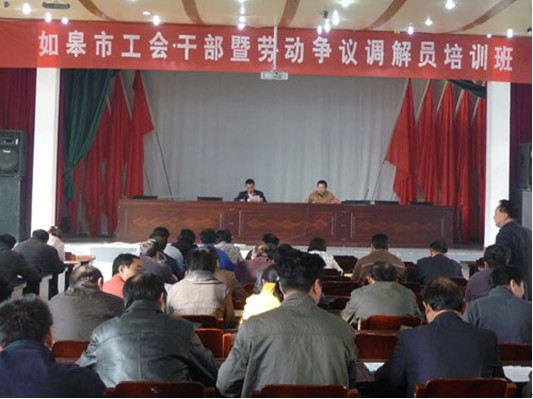 2010年11月如皋市总工会举办了第三期镇、系统及部分规模企业工会干部暨劳动争议调解员培训班。