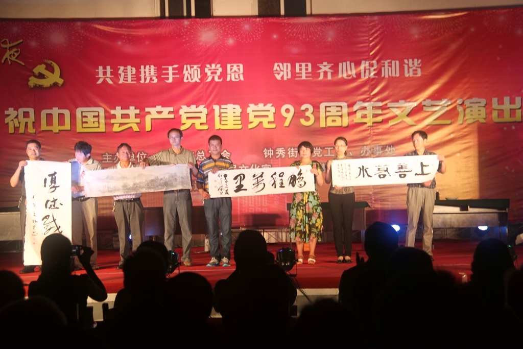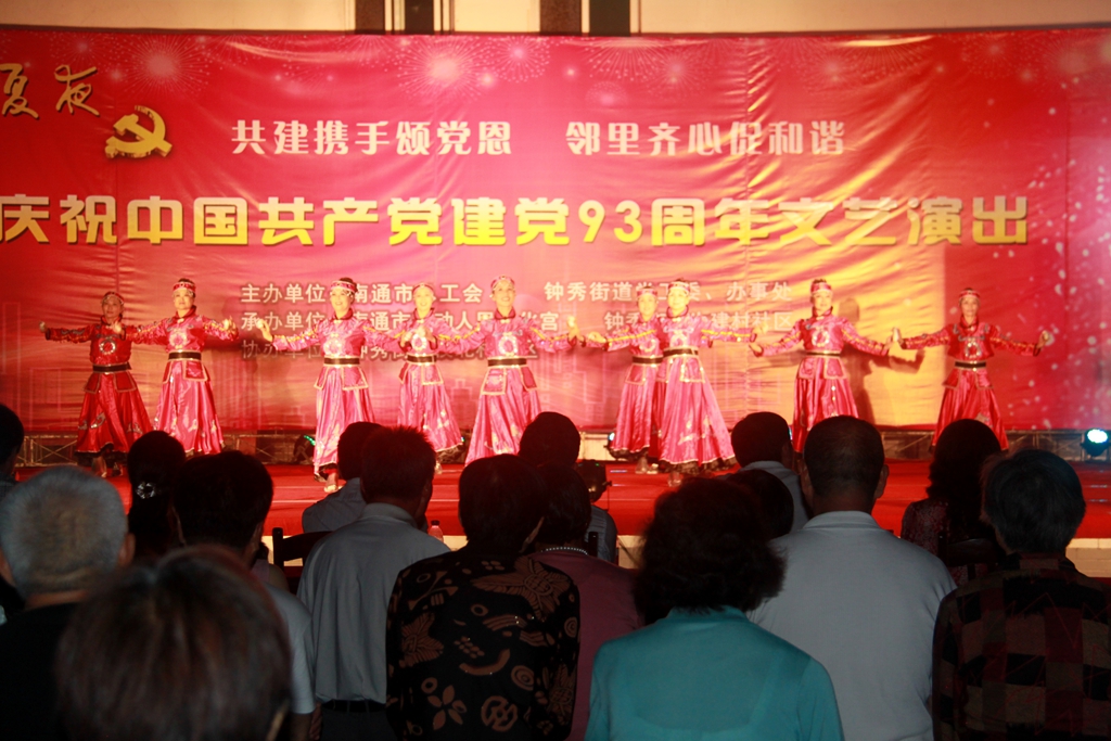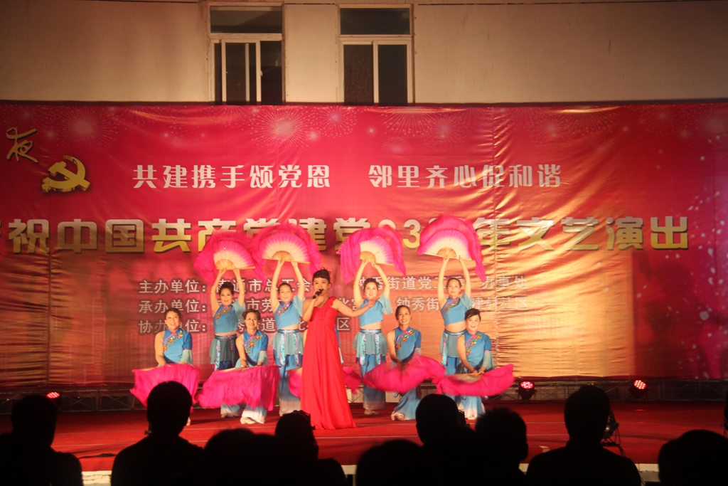 为了庆祝中国共产党建党93周年,热情讴歌党的丰功伟绩,6月28日晚,市总工会与共建单位钟秀街道生建村社区在市环东广场联合举办了一场以“共建携手颂党恩、邻里齐心促和谐”为主题的文艺晚会,为广大群众送去了一场丰盛的精神文化大餐。