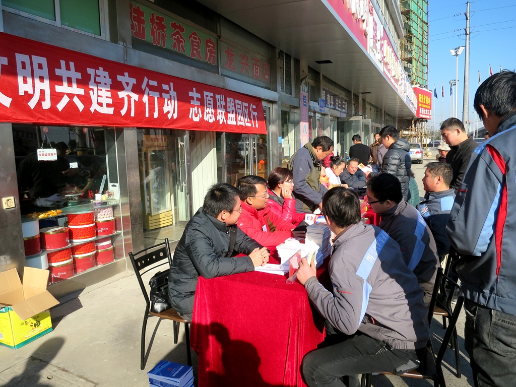 12月5日,市总工会、崇川区环卫处、生建村党总支近20名党员来到生建村工业园区,联合开展以“文明共建齐行动,志愿联盟园区行”为主题的志愿服务广场活动。活动内容包括向园区职工和周围居民、青少年宣传国家宪法、进行劳动法律法规咨询、劳动保护、民主管理和维权知识宣传、义诊、家电维修及反邪教宣传等,整个活动共发放宣传资料300多份,接待职工群众100多人。